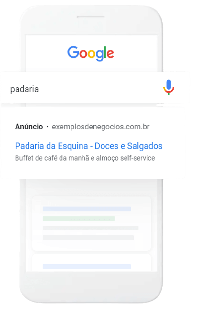 É no Google que as pessoas pesquisam o que fazer, aonde ir e o que comprar. Seu anúncio pode ser exibido na maior plataforma de buscas do mundo, no momento exato em que uma pessoa estiver pesquisando produtos e serviços como os seus.